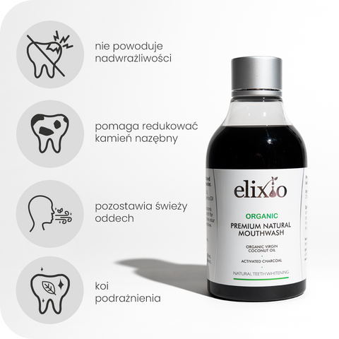 Ekologiczny olejek kokosowy oczyszcza i pielęgnuje jamę ustną, zapewniając jednocześnie delikatny efekt wybielenia. Pomaga pozbyć się bakterii i toksyn z miejsc trudniej dostępnych dla szczoteczki, wspiera zdrowie dziąseł i nie narusza powłoki szkliwa.